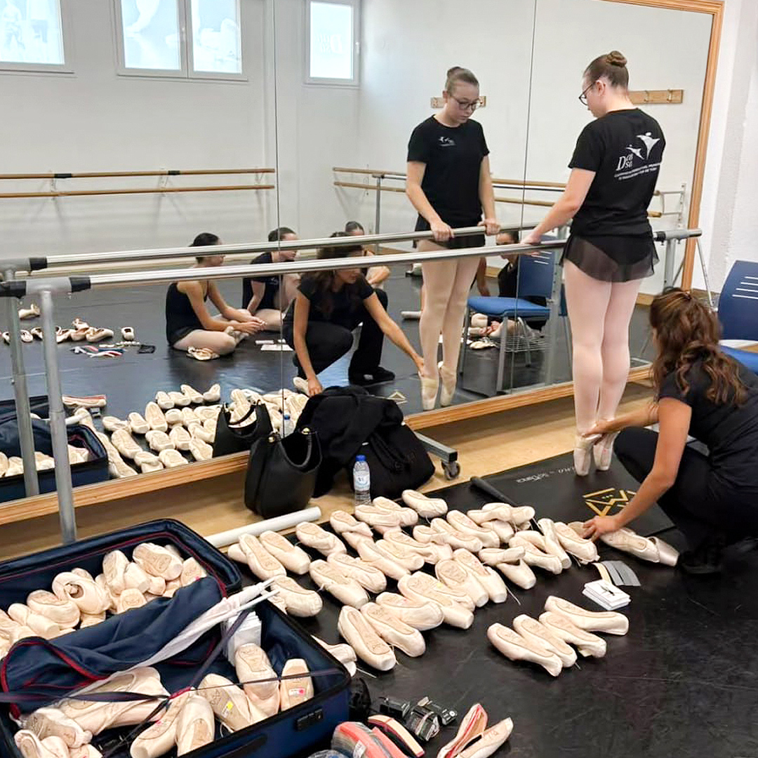ALINA fitting session with official fitters Maria de Barros and Thaís Parelli, joined by Federico Bosch, Só Dança’s representative in Spain, at the Conservatorio Profesional Municipal de Danza de Riba-roja. The event brought together teachers and 65 students from the conservatory, who were truly impressed with the ALINA pointe shoes.